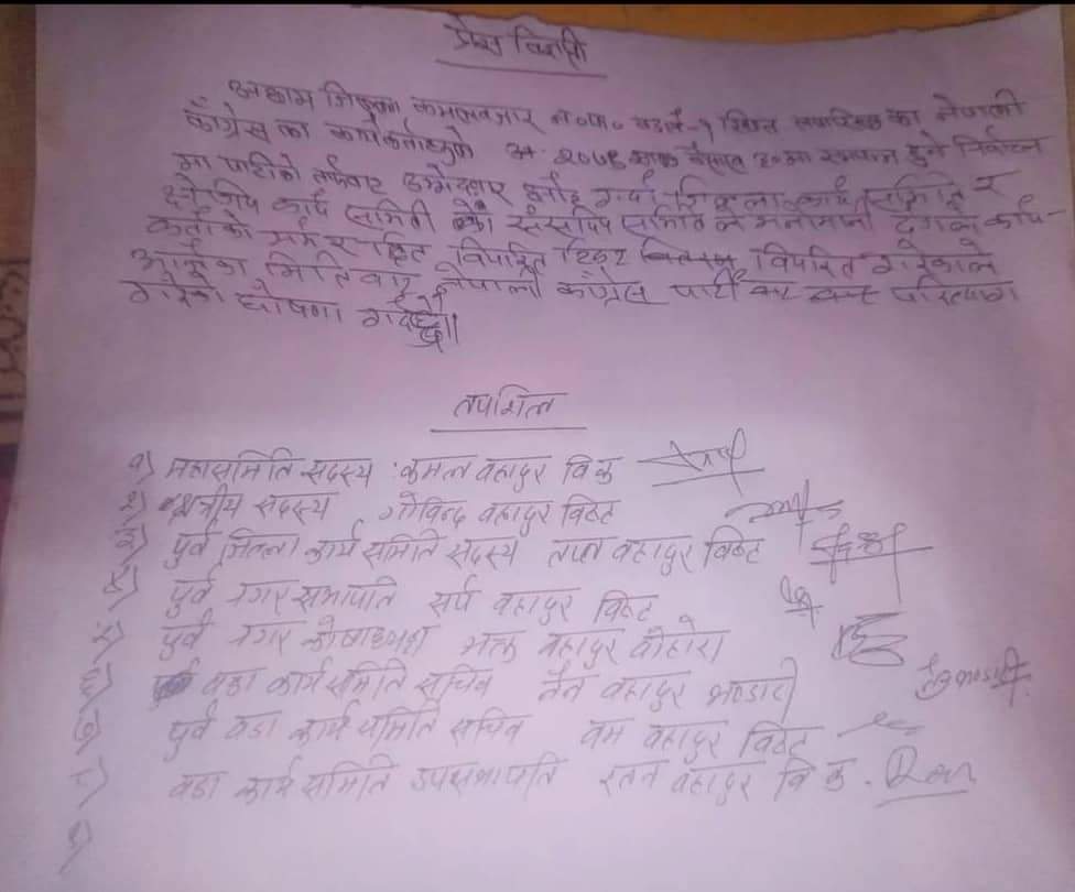 अछाम : आसन्न बैशाख ३० गते हुने स्थानीय निर्वाचनमाका लागि कमलबजार नगरपालिका वडा नं १ मुलिमा पार्टीले टिकट वितरण गर्दा मनोमानी ढंगले वितरण गरेको भन्दै कांग्रेस नेता कार्यकर्ताले राजिनामा दिएका छन्। कांग्रेस महासमिति सदस्य कमल बहादुर बिक लगायत ८ जना नेताले पार्टी परित्याग गरेको घोषणा गरेका छन । एक प्रेस बिज्ञप्ती जारी गर्दै नेपाली कांग्रेsaको…