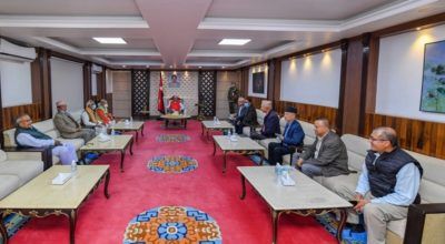काठमाडौं– राष्ट्रपति विद्यादेवी भण्डारीले आह्वान गरेको सर्वदलीय बैठक शीतल निवासमा सुरू भएको छ। बैठक अहिले साढे ४ बजे सुरू भएको राष्ट्रपतिको कार्यालयले जनाएको छ। सर्वदलीय बैठकमा सरकारको तर्फबाट प्रधानमन्त्री एवम् नेकपा एमालेका अध्यक्ष केपी शर्मा ओली , उपप्रधानमन्त्री ईश्वर पोख्रेल ,अर्थमन्त्री विष्णु पौडेल र गृहमन्त्री रामबहादुर थापा सहभागी छन्। एमालेका वरिष्ठ नेतासमेत रहेका पूर्व प्रधानमन्त्रीद्वय माधवकुमार…