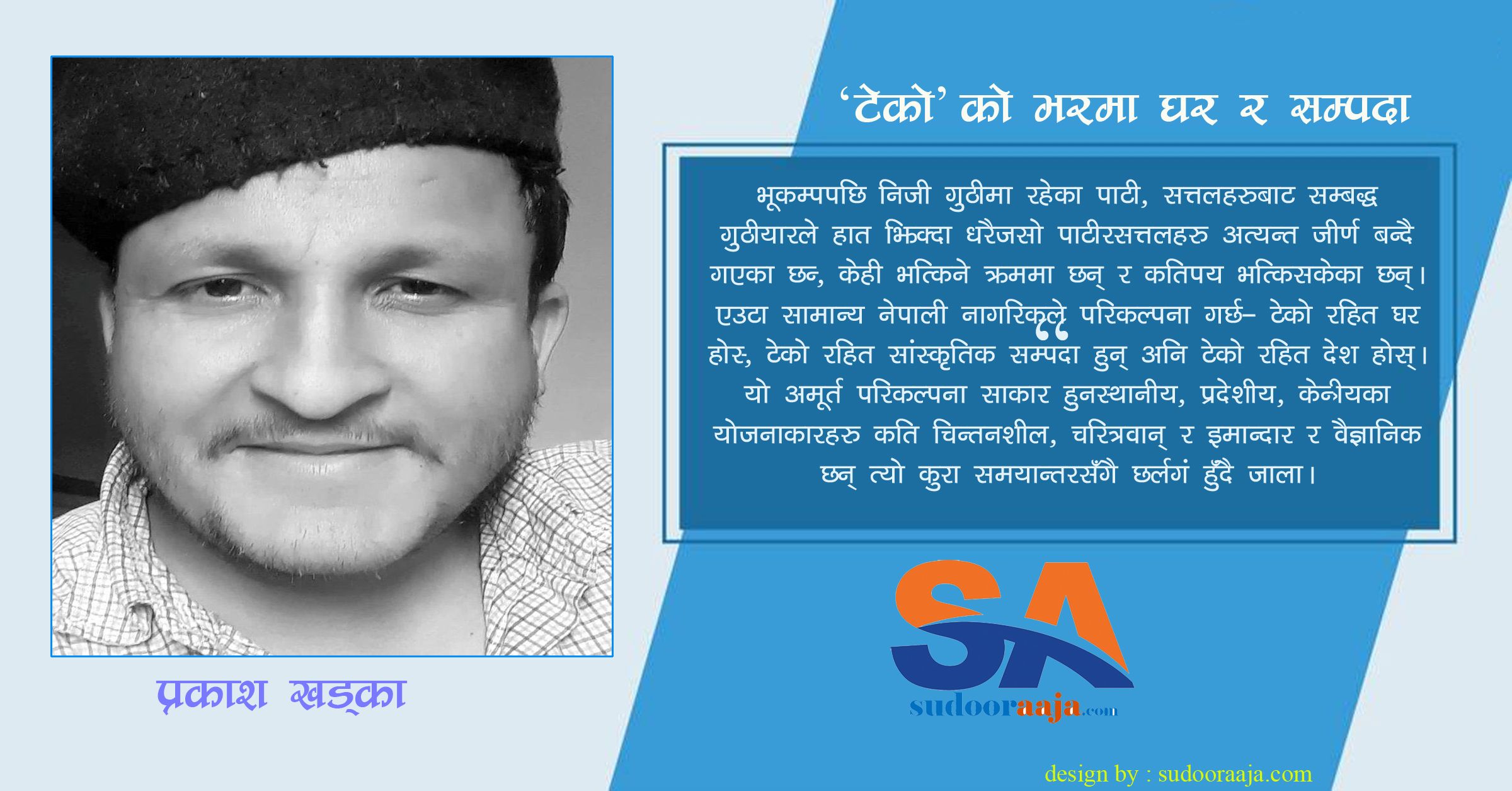 प्रकाश खड्का - वि.सं. २०७७ को वैशाख महिना।सारा विश्व कोरोना संक्रमणको चरमोत्कर्षमा रहँदा नेपाल २१ औँ शताब्दीको सबैभन्दा ठूलो राष्ट्रिय प्रयल अर्थात् भूकम्प प्रकोपको ५ वर्षीय स्मृतिमा छ। हजारौँ जन, हजारौँ सांस्कृतिक सम्पदा र अर्बौँआर्थिक क्षति भएको पीडाबाट देश उन्मुक्त भइसकेका छैन। अझै पनि प्रभावित क्षेत्रका हजारौँ मानिसहरु घरविहीन छन्, शहरभित्रका अग्ला पुराना घरहरु टेकोमा…