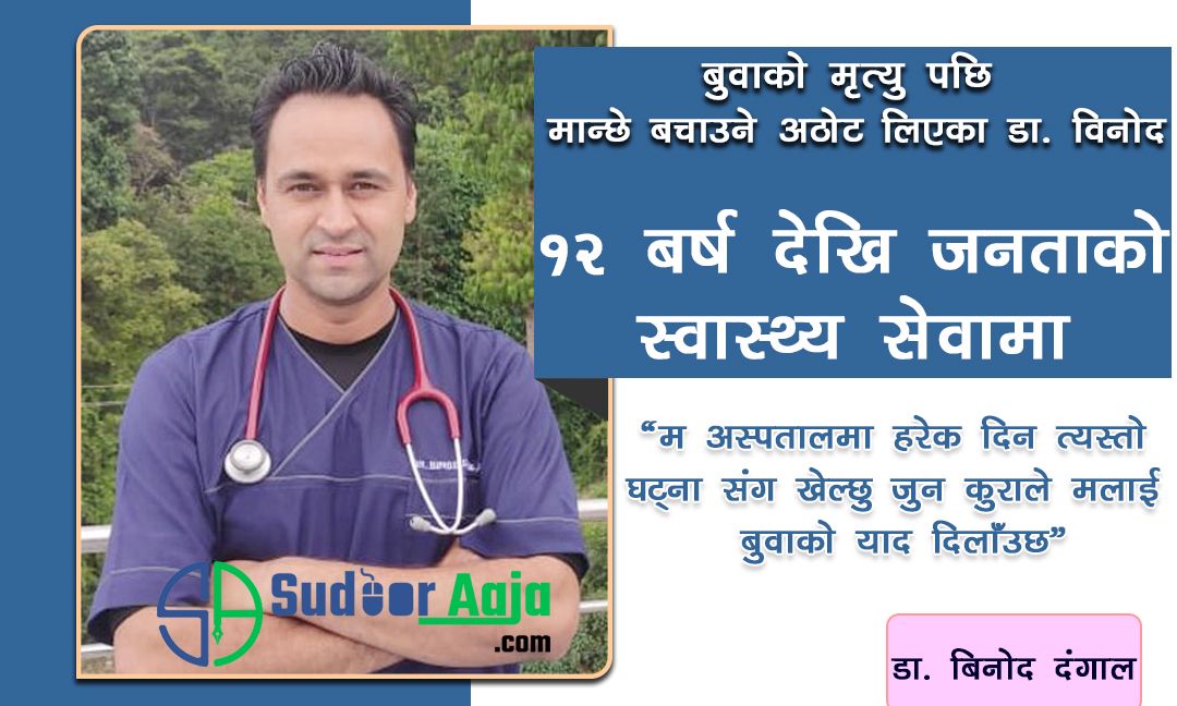 दोलखा - डा विनोदका सानै उमेरमा बुबाको मृत्यु भयो। बुबाको मृत्यु किन भयो उनले ठम्याउन सकेनन्। विद्यालय शिक्षा पढ्ने बेलामा पनि उनको मनमा त्यही कौतुहलता जागिरह्यो। जतिजति विद्यालयको कक्षा चढ्दै जान्थे उनी उति नै बुबाको मृत्युको कारण जान्न खोन्थे। तर बाल मस्तिष्कमा त्यसको उत्तर पाउन सक्थेनन्। जब उनी बुझ्ने भए तब मात्र थाहा पाए उनको बुबाको…