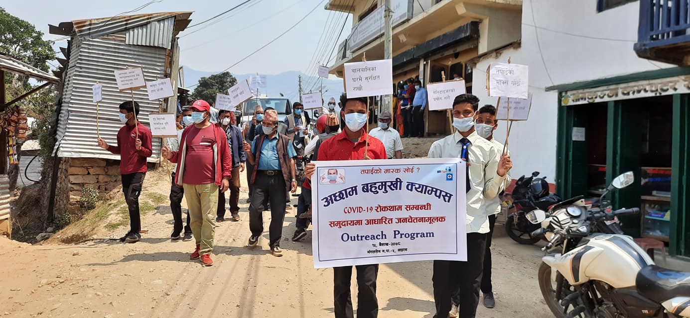 अछाम : तपाइको मास्क खोइ ? अभियान अन्र्तगत अछाम बहुमुखी क्याम्पसले कोरोना संक्रमण विरुद्ध सदरमुकाम मंगलसेनमा सचेतनामुलक कार्यक्रम सहित मास्क वितरण गरेको छ । देशभर तीव्र रुपमा फैलिरहेको कोरोना भाइरस र यसको प्रभाव अछाममा समेत देखा परेकोले उक्त भाइरासबाट बच्न मंगलसेन बजारमा नागरिकहरुलाई सचेतामुलक जानकारी दिनका लागि अभियान सञ्चालन गरिएको हो । कोरोना संक्रमणबाट अत्यावश्यक…